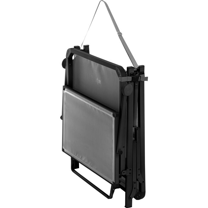 Zelo udobno ležišče s stabilnim, zložljivim okvirjem na treh nogah iz eloksiranega aluminija, visoko ležalno površino (V = 48 cm) iz tkanine Syntex Plus, odporne na vremenske vplive, in nastavljivim naslonom za hrbet. Dobavi je priložen praktičen nadstrešek za sončenje.