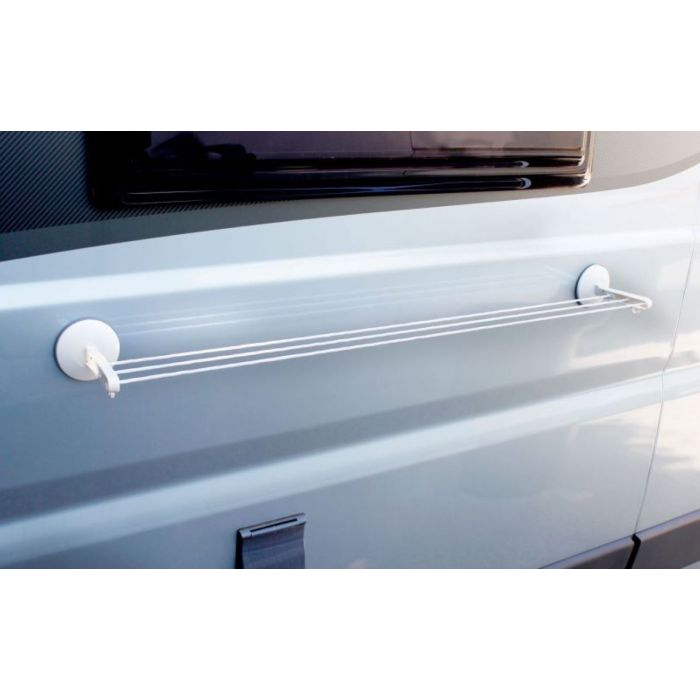 Naprava za sušenje perila s sesalnimi pokrovčki.