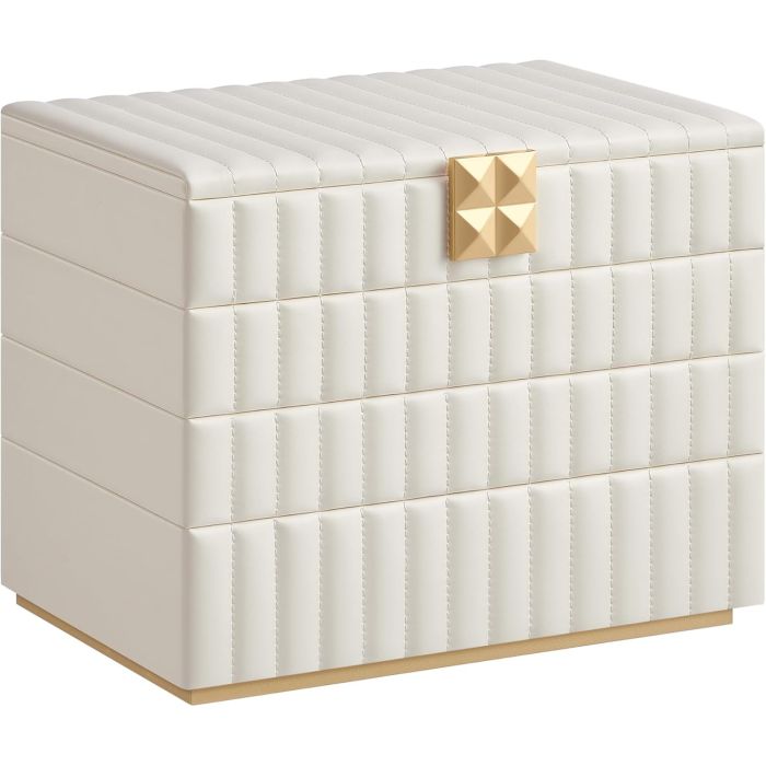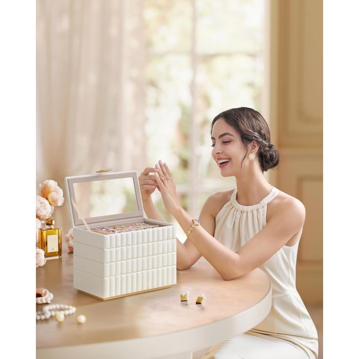 - Darilo za spomin: Presenetite svoje ljubljene s to elegantno belo škatlo za nakit. Naj bo na komodi v spalnici ali garderobi, brezhibno združuje funkcionalnost z estetiko. Darilo, ki bo zagotovo cenjeno.