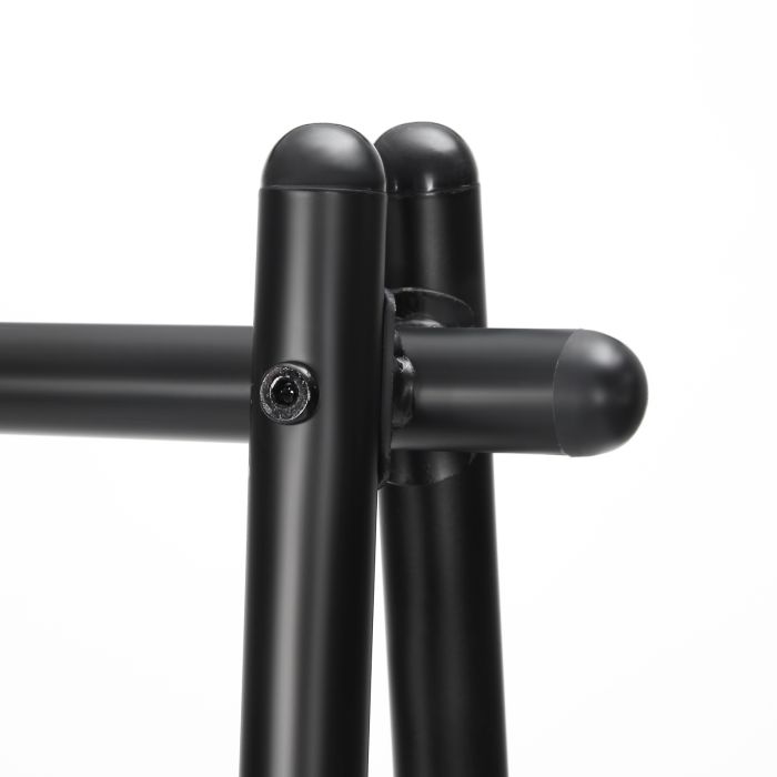 Izdelan za dolgoživost: Ta prostoren obešalnik je izdelan iz trdnega jekla s stabilnim A-okvirjem in se ponaša z visečo tirnico za plašče in obleke (do 40 kg) ter mrežasto spodnjo polico za čevlje, škatle in drugo (do 15 kg).