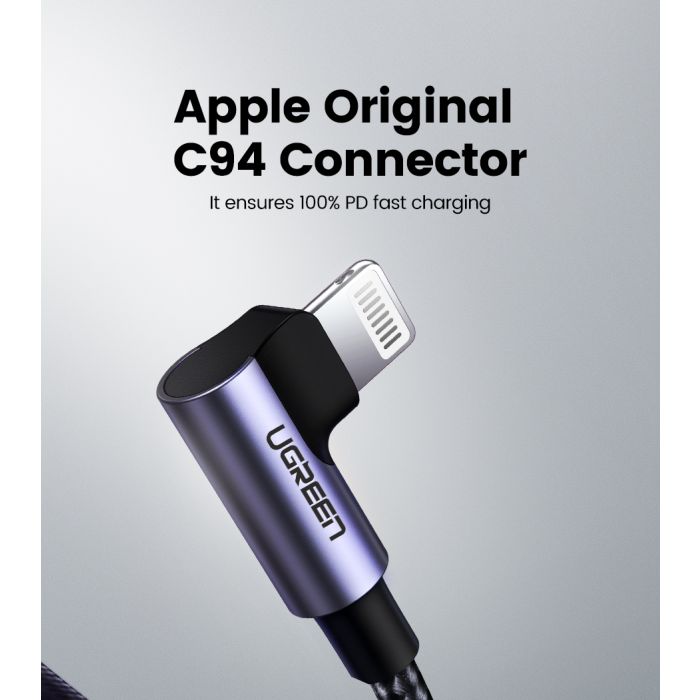 Ugreen MFI kotni kabel USB-C na Lightning 1,5m Hitrost: do 480Mbps Polnjenje: do