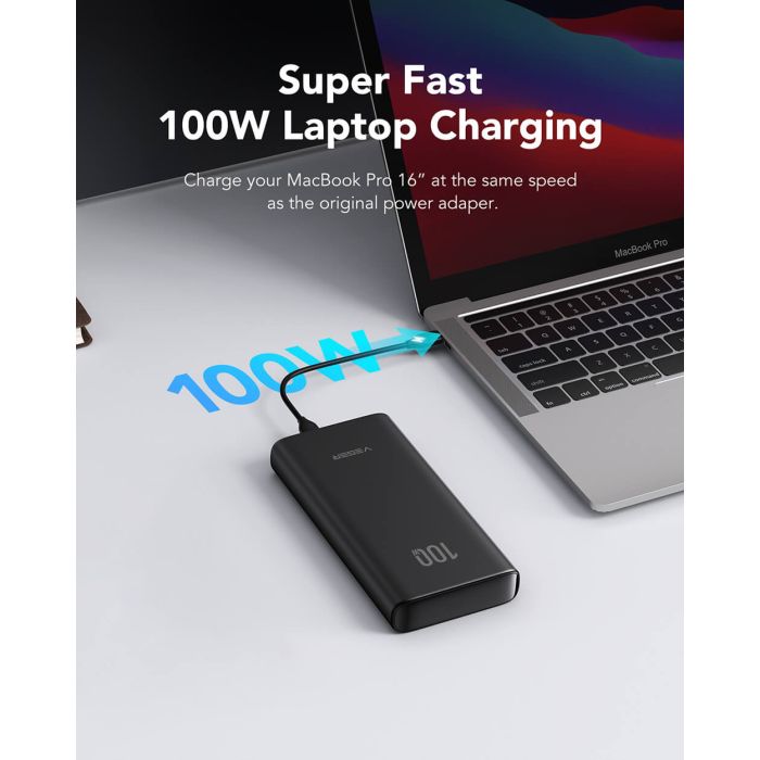 Polnjenje prenosnika na poti Zmogljiv 100W PD izhod pomeni, da lahko popolnoma napolni vaš MacBook Pro, prav tako dobro kot originalni polnilec. Prinesite svoj MacBook Pro 13” nazaj v življenje iz 0% na 65% v samo eni uri.