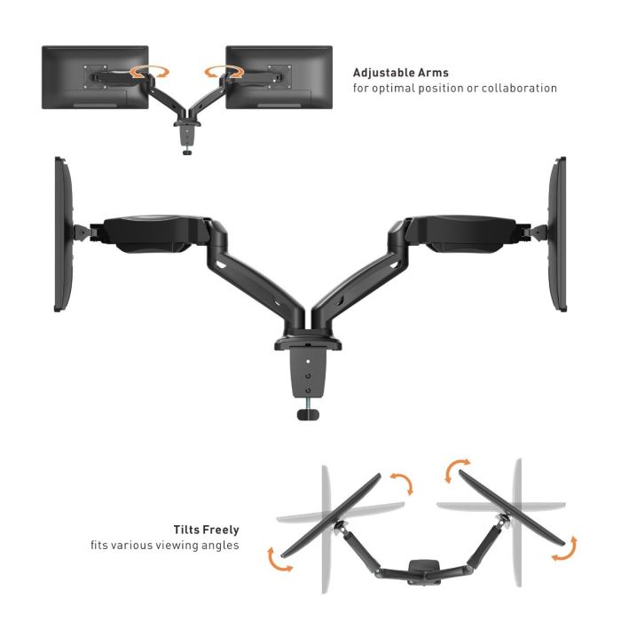 Povečajte prostor na namizju in delo pred zaslonom naredite udobnejše z VonHaus dvojnim nosilcem z enoročnim plinskim mehanizmom in sponko.