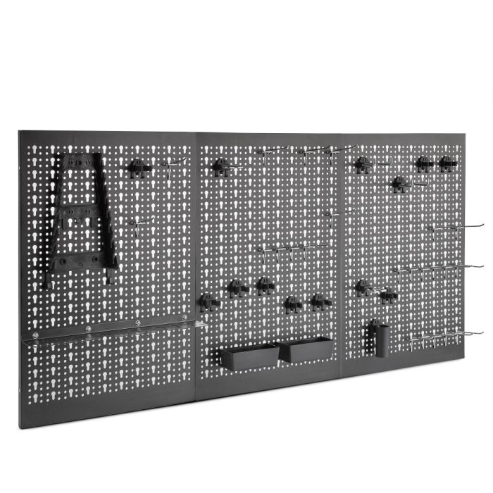 Vsaka tabla je izdelana iz vzdržljivega perforiranega jekla za dolgotrajno in zanesljivo shranjevanje orodja.