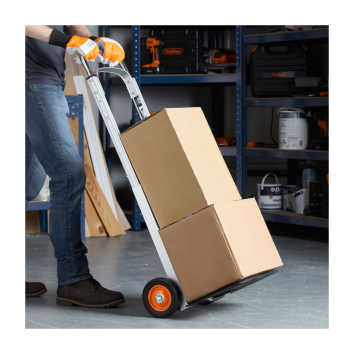 Nakladalni voziček z nosilnostjo do 90kg. Največja dolžina ročaka je 108cm. Je zložljiv in robusten.