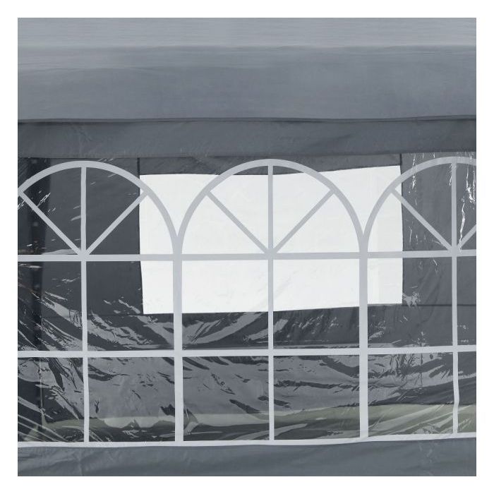Siva barvna shema paviljona je sodobna in brezčasna, dodaja pridih sofisticiranosti vsakemu vrtu. Zastor je izdelan iz vzdržljivih, vremensko odpornih materialov, zato vas bo zaščitil vrsto let.