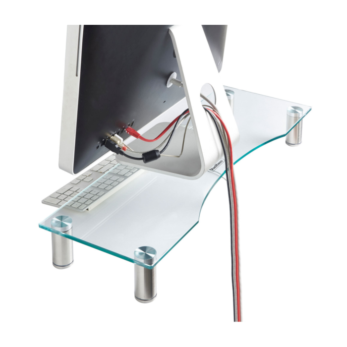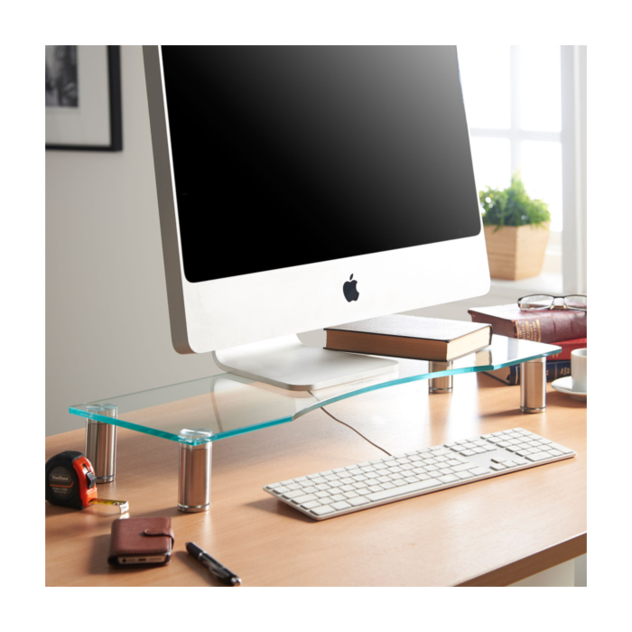 Dvignite svoj monitor na popolno višino za optimalen pogled s stojalom za monitor VonHaus iz ukrivljenega stekla.